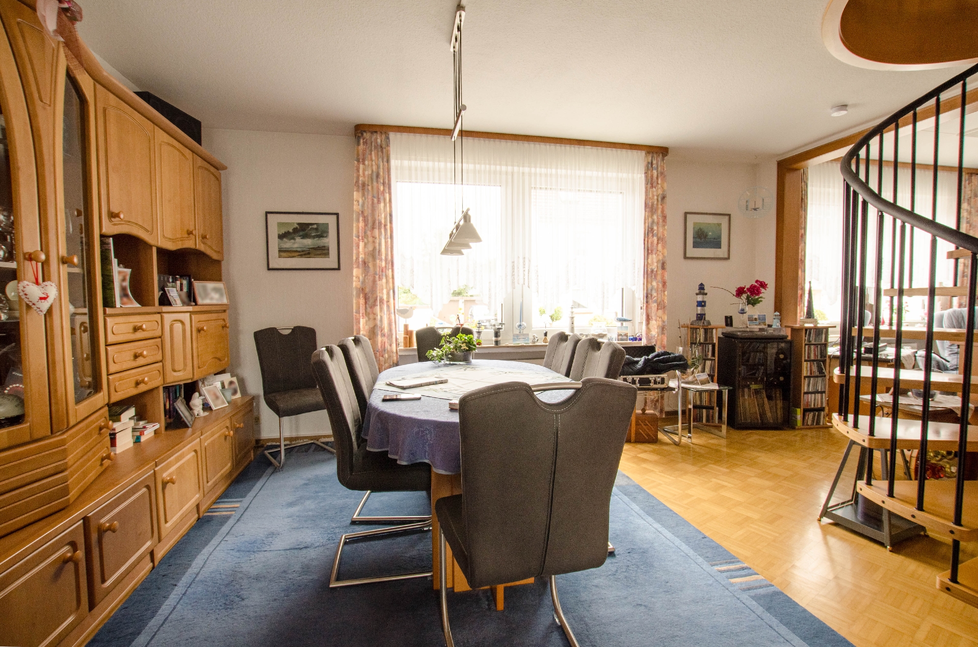 Willkommen in Ihrem neuen Zuhause einem charmanten Zweifamilienhaus, das sowohl Raum für die ganze Familie als auch eine attraktive Investitionsmöglichkeit bietet. Die erste Wohneinheit erstreckt sich großzügig über das Erdgeschoss und das erste Obergeschoss und begeistert mit durchdachten Details. Im Erdgeschoss erwarten Sie ein einladendes Gäste-WC, ein praktischer Hauswirtschaftsraum (mit Dusche) und eine offene Küche, die nahtlos in den lichtdurchfluteten Wohn- und Essbereich übergeht. Hier sorgt eine elegante Wendeltreppe für den Zugang zum ersten Obergeschoss, wo sich ein gemütliches Schlafzimmer , zwei kinderfreundliche Zimmer und ein stilvolles Badezimmer mit Dusche und Badewanne befinden ideal für entspannte Stunden.