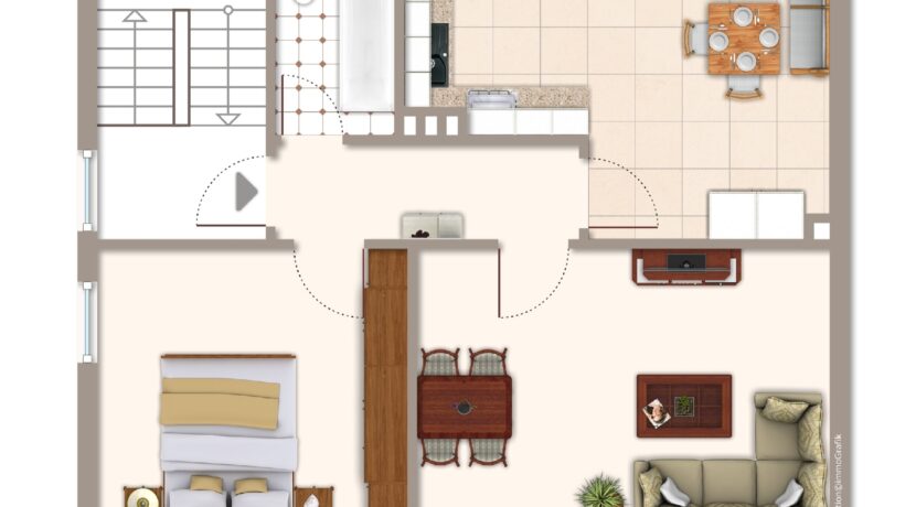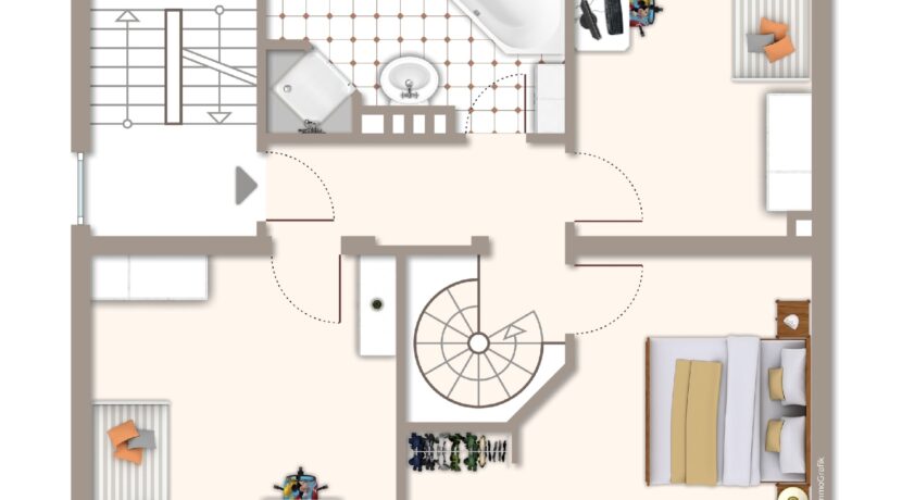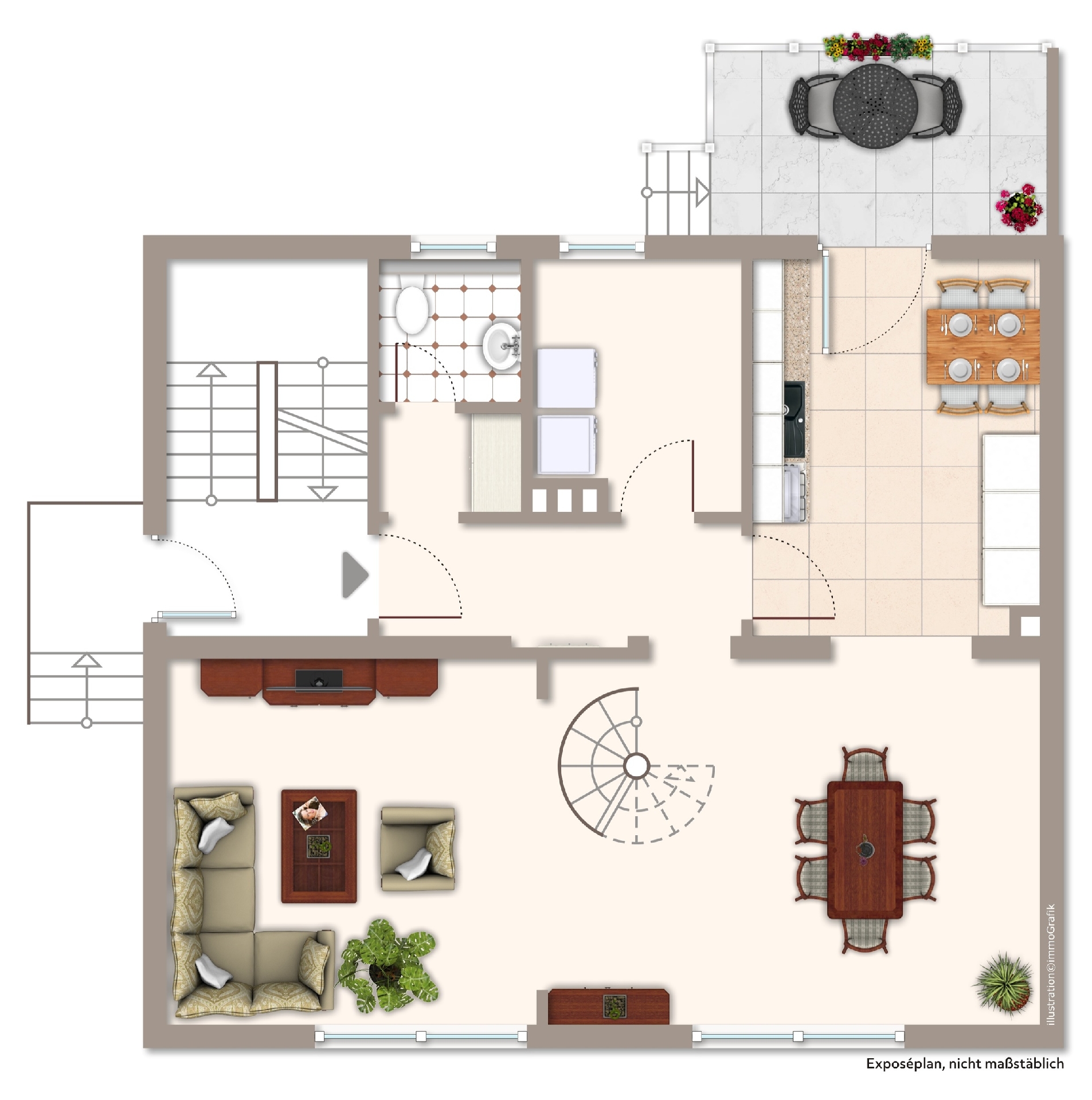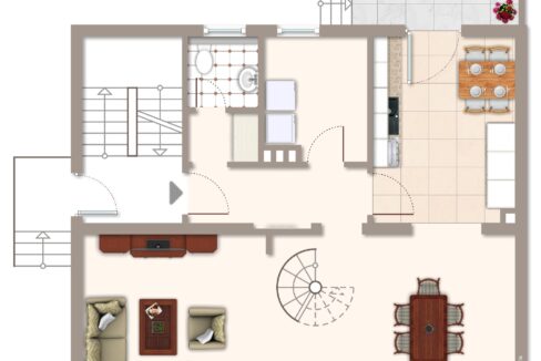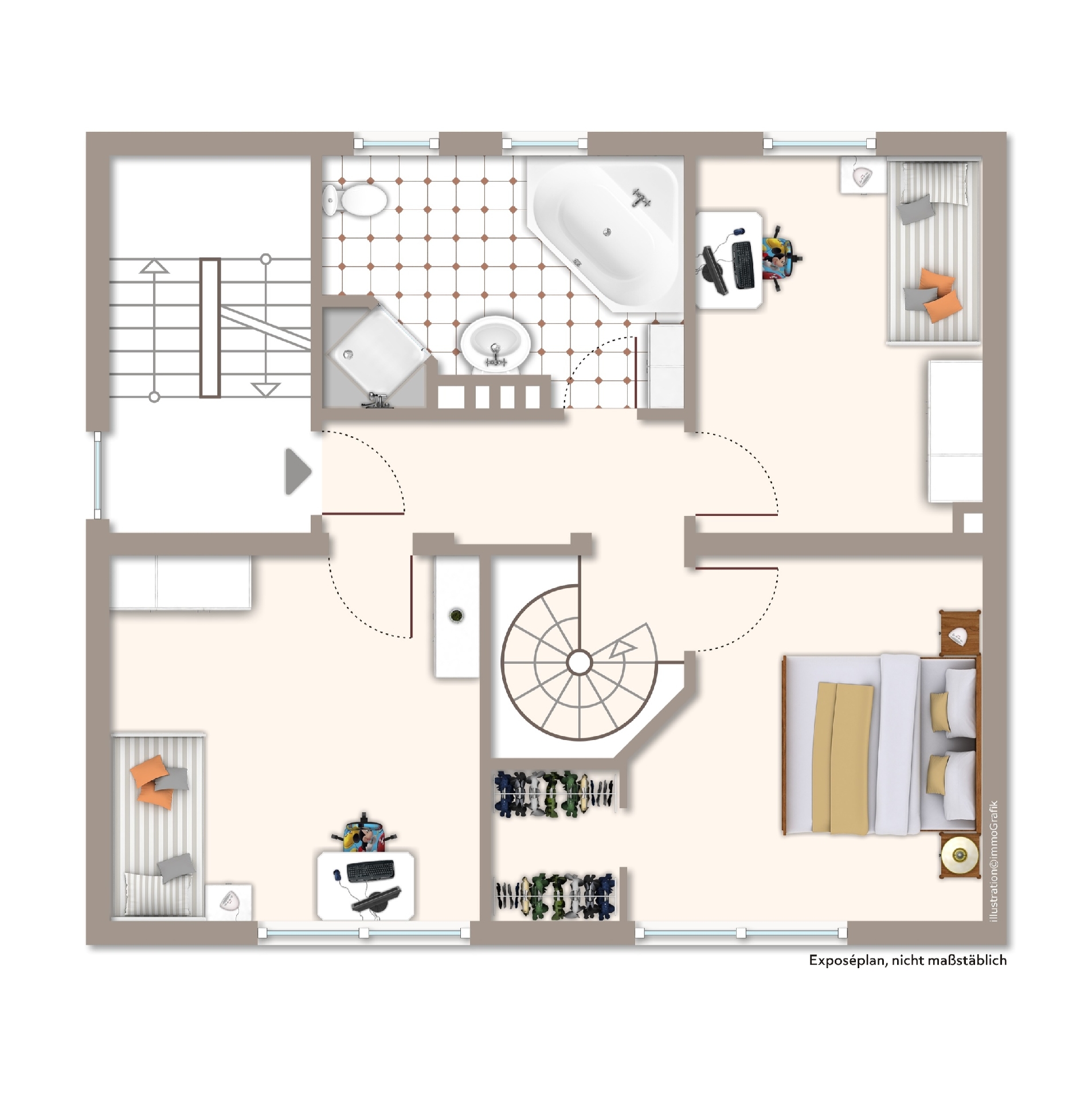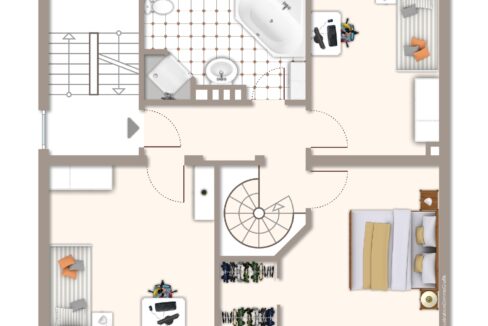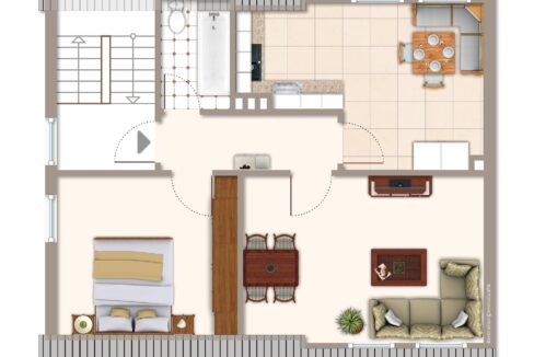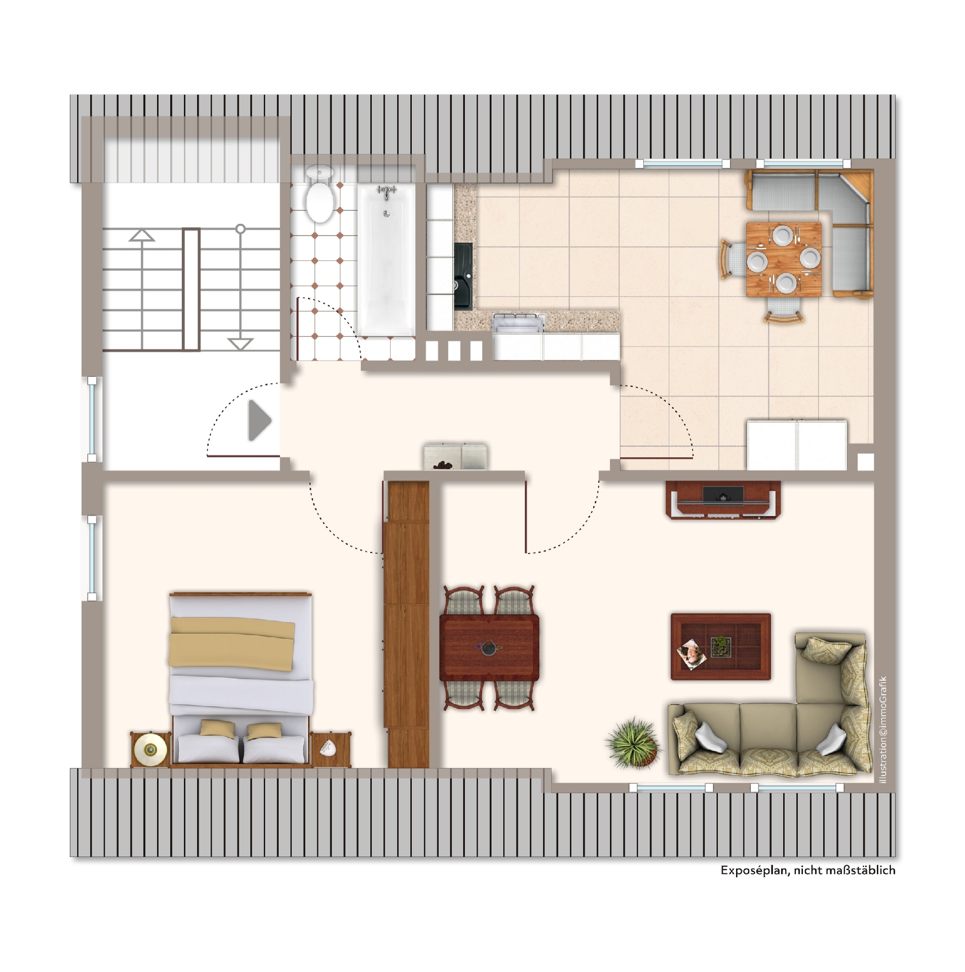Im Dachgeschoss finden Sie eine charmante Zweizimmerwohnung, die sich perfekt als separate Einheit eignet. Diese verfügt über eine funktionale Küche mit Essplatz, ein helles Wohnzimmer und ein gemütliches Schlafzimmer alles, was man für ein unabhängiges Wohnen benötigt.
